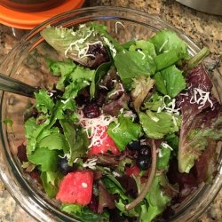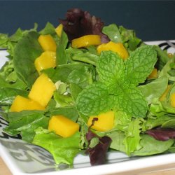 1Combine the baby greens, mango, watermelon, mint, feta cheese, and minced onion in a mixing bowl. Whisk the vinegar, olive oil, and mango juice concentrate together in a small bowl, and pour over the salad. Toss gently to evenly coat.