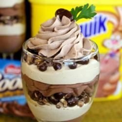 "I came up with recipe to wow my husband around our anniversary. Was looking for a sweet chocolate whipped topping that didn't taste chalky. This worked in my favor and it's been super secret until now. Top your favorite dessert item and store unused portion in the refrigerator in a covered dish. Enjoy."