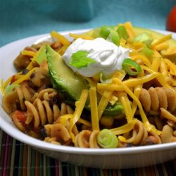 4Stir macaroni into chili, cover skillet, and simmer until macaroni is heated, 5 minutes; top with Cheddar cheese and green onions to serve.