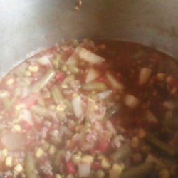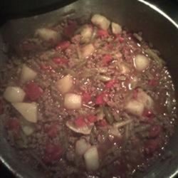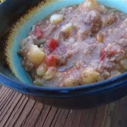 "This simple but hearty meal is made with hamburger, potatoes, green beans, and diced tomatoes cooked in a delicious broth. Perfect for serving on those cold winter nights!"
