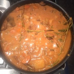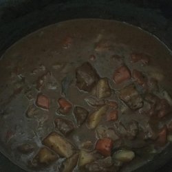 "This recipe was made up when my kitten broke a jar of braising sauce and I had 3 pounds of stew meat to do something with. It turned out so delicious! Serve with a dollop of sour cream. Crusty bread and a salad make a great side to the meal as well. Replace any portion or all of the beef stock with red wine if you wish."