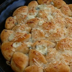 2Separate biscuits and cut into quarters; place biscuit pieces into prepared baking dish. Mix unsalted butter and blue cheese together in a bowl until thoroughly combined and brush the butter mixture over the biscuits.