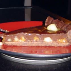 8Reserve 13 whole macadamia nuts and chop the rest. Pour cooled caramel into the cooled tart shell and spread evenly with a metal spatula; sprinkle chopped nuts over caramel. Pour chocolate cream on top and spread evenly.