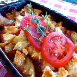 "Tomatoes are baked with torn bread to make a savory tomato pudding. So simple, we love it with meatloaf and baked potatoes. I serve it at dinner parties, and I am always asked for the recipe. Add it to any oven cooked meal."