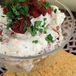 "This is a zippy dip that will be a real crowd pleaser. Serve with your favorite chips, pita bread or cubed bread. You may add more horseradish for more zip!!"