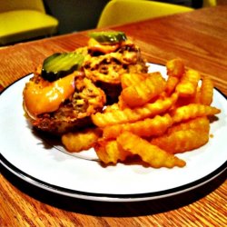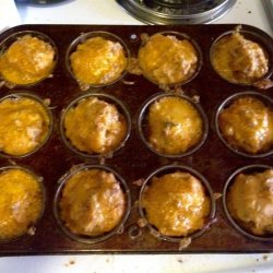 3Mix flour, sugar, baking powder, and salt together in a large bowl. Stir ketchup, milk, butter, eggs, and mustard together in a separate bowl; add to flour mixture and stir until pink in color. Mix ground beef mixture into the flour mixture; spoon into prepared muffin cups to completely filled.