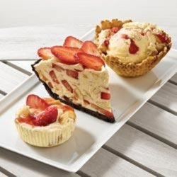 "A versatile, creamy frozen strawberry filling, made with vanilla cookies, cream cheese and fresh strawberries, can fill a pie, make mini-pie snacks, or be served in waffle bowls -- your choice!"