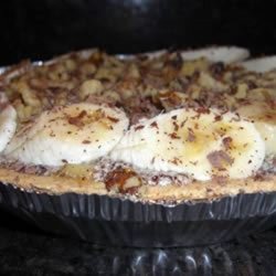 "Bananas, chocolate, and walnuts in a pie. Heaven! Garnish with walnuts, banana slices, and whipped cream. Please note: this pie contains raw eggs. We recommend that pregnant women, elderly, young children and people with medical or immune problems do not consume dishes containing raw eggs."