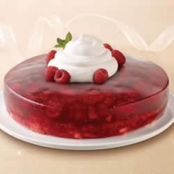 1Add boiling water to gelatin mixes in medium bowl; stir 2 min. until completely dissolved. Add raspberries; stir until thawed. Pour into 9-inch round pan sprayed with cooking spray.