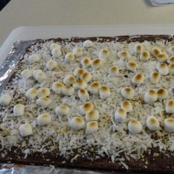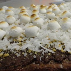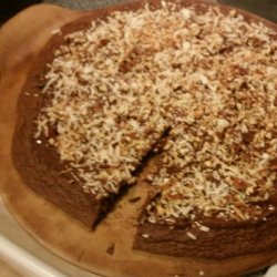 1Melt 1 cup chocolate chips, and 1/2 cup shortening in a double boiler; cool. Stir in flour, sugar, eggs, and baking powder with fork. Spread crust evenly onto a well greased pizza pan.