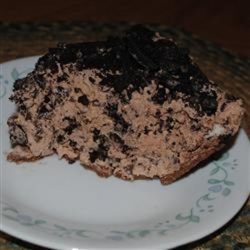 "This delicious frozen pie hides a wealth of chocolate sandwich cookies mingled with chocolate pudding and whipped topping. Garnish each slice with whipped cream and a sprinkle of cocoa powder if you like."