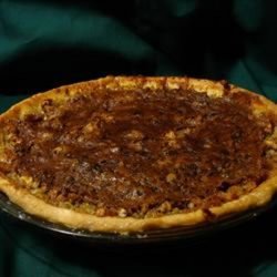 2Beat eggs until thick and lemon colored (about 3 minutes). Continue beating while adding sugar, salt, corn syrup, butter or margarine, and vanilla. Stir in coconut, oats, and chocolate. Pour filling into pie shell.