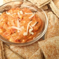 5Cook and stir the pureed dip over medium heat until it reaches a simmer. Stir in the shredded mozzarella cheese until melted. Serve hot.