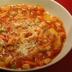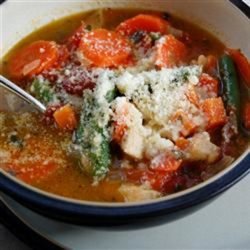 2Add chicken broth, undrained tomatoes, northern beans, carrots, potato, salt and pepper. Bring to a boil, stirring to break up tomatoes. Reduce heat to low; cover and simmer for 15 minutes, stirring occasionally. Add green beans and cook for 5 minutes or until vegetables are tender.