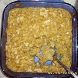 In a small bowl, combine corn, crackers and egg. Mix and pour into small baking dish. Bake for 30 minutes. Season with salt and pepper to taste.