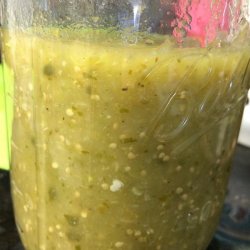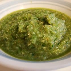 "This is the 'salsa de tomatillo' that I grew up with. It can be used as a sauce for grilled chicken, fish or shrimp, as the basis for green chilaquiles (pour over tortilla chips, shredded cooked chicken and shredded Monterey Jack, then heat under the broiler), and as a dipping sauce for chips. Delicioso!"