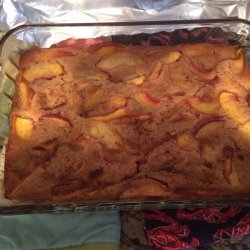 3Pour mixture into prepared baking pan. Arrange peaches on top and sprinkle with cinnamon. Bake in preheated oven until golden brown, about 30 minutes.
