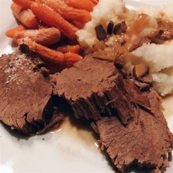 "Venison roast slow cooked with onion, creamy mushroom soup, a dab of this and a spice of that. Simple, tasty way to enjoy that game meat."