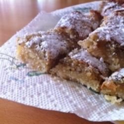 4Return to oven and bake an additional 20 minutes. Remove from oven and sprinkle with powdered sugar. Let bars cool before cutting.