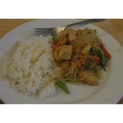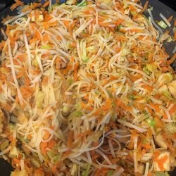 1Place the rice noodles in a large bowl, and cover with warm water. When soft, drain, and set aside.