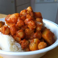 "A delicious, creamy chickpea and potato curry, full of flavor and so simple. You control the spice! Try it once and you'll be hooked! My sister gave me this recipe. I don't know where it came from but I'm glad she did! Serve over a bed of rice."