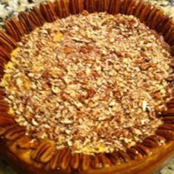 2Combine the graham cracker crumbs, ground pecans, 2 tablespoons white sugar, 2 tablespoons brown sugar, and the melted butter or margarine and mix well. Firmly press mixture into one 9 inch springform pan.