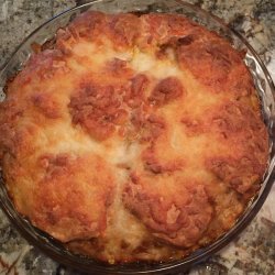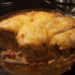 4Remove meat mixture from heat, and stir in 1/2 cup shredded cheese, sour cream, and egg; mix well. Spoon over bottom crust. Arrange remaining biscuit halves to form top crust, and spoon remaining cheese evenly over the top.