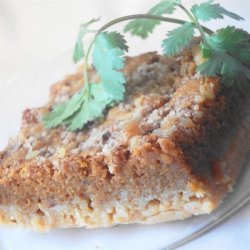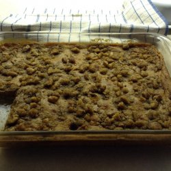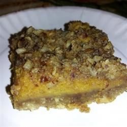 5Mix together the chopped nuts, brown sugar and butter. Sprinkle topping on custard and bake additional 15 minutes. Remove from oven and allow to cool. Cut into squares and top with whipped cream if desired.