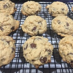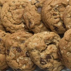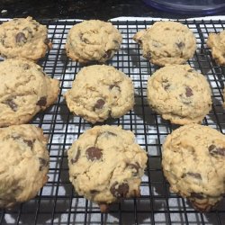 2In a medium bowl, cream together the butter, white sugar and brown sugar until smooth. Stir in the peanut butter, vanilla and egg until well blended. Combine the flour, baking soda and salt; stir into the batter just until moistened. Mix in the oats and chocolate chips until evenly distributed. Drop by tablespoonfuls on to lightly greased cookie sheets.