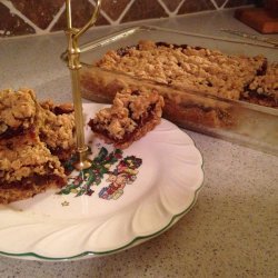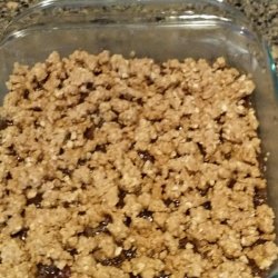 2To make the crust and topping, stir together the oats, 1/2 cup brown sugar, flour, baking powder, baking soda, 1/2 teaspoon cinnamon and salt in a medium bowl. Cut in butter using a pastry cutter or your fingers. Mixture should be coarse and crumbly. Stir in 2 tablespoons water until evenly distributed. Press about 2/3 of the mixture into the bottom of the prepared pan. Spread the date mixture evenly over the crust all the way to the edges. Sprinkle the remaining crust mixture over the date layer. Press down lightly.