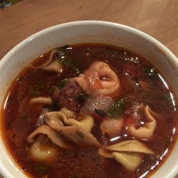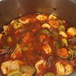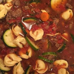 3Skim fat from the soup. Stir in zucchini and parsley. Simmer covered for 30 minutes. Add tortellini during the last 10 minutes. Sprinkle with Parmesan cheese on top of each serving.