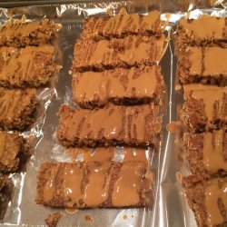 3Bake for 30 to 35 minutes in the preheated oven, until the bars begin to turn golden at the edges. Cool for 5 minutes, then cut into bars while still warm. Do not allow the bars to cool completely before cutting, or they will be too hard to cut.