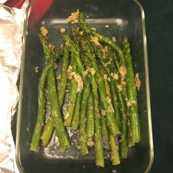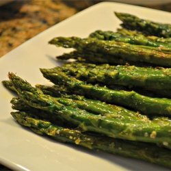 2Place the asparagus into a mixing bowl, and drizzle with the olive oil. Toss to coat the spears, then sprinkle with Parmesan cheese, garlic, salt, and pepper. Arrange the asparagus onto a baking sheet in a single layer.