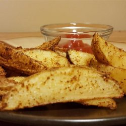 2Cut potato into wedges. Mix olive oil, paprika, garlic powder, chili powder and onion powder together. Coat potatoes with oil/spice mixture and place on a baking sheet.