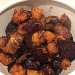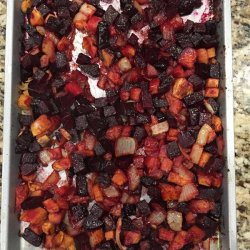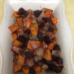 4Bake beets 15 minutes in the preheated oven. Mix sweet potato mixture with the beets on the baking sheet. Continue baking 45 minutes, stirring after 20 minutes, until all vegetables are tender.