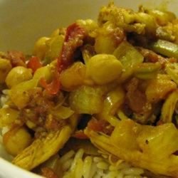 "This is a popular Pakistani dish. This is a quick and tasty way to use leftover roast chicken. The sauce can also be used for any cooked poultry, lamb, or beef."