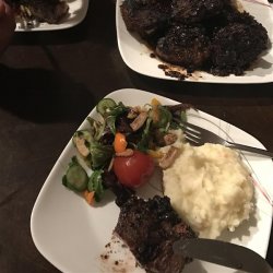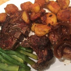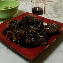 "This recipe for lamb chops is a favorite in my house. It is an easy and quick recipe for two people (we eat two chops each). Rosemary and thyme give it great flavor. If you double the recipe, remember that the sauce will take longer to reduce."