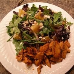 3In a bowl, combine cumin, paprika, salt and pepper. Cut salmon in 8 strips and coat with spices. Grill (or sear in a non-stick skillet brushed with canola oil) until crusty.