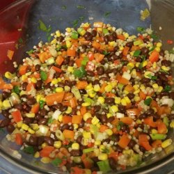2In a large bowl, whisk together the olive oil, lime juice, vinegar and cumin. Add green onions, red pepper, cilantro, corn and beans and toss to coat.
