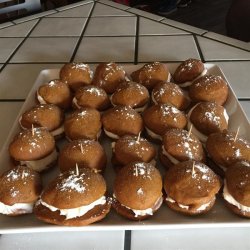 3Drop dough by heaping teaspoons onto the prepared baking sheets. Bake at 350 degrees F (175 degrees C) for 10 to 12 minutes. Let cookies cool then make sandwiches from two cookies filled with Whoopie Pie Filling.