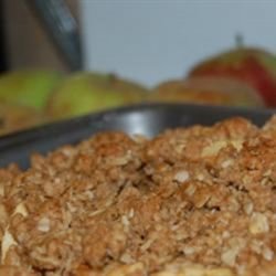 "This is a very good recipe for apple crisp made with oatmeal. Serve warm or cold."