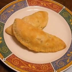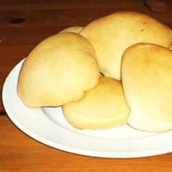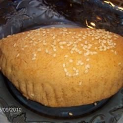 3On a lightly floured board, roll each loaf of dough into a 12 inch circle. Cut each circle into 6 wedges. Spoon cabbage/beef filling onto center of each dough piece, dividing equally. Pull three points of each wedge up to the center and pinch to seal. Place bierocks on a lightly greased cookie sheet. If desired, brush dough with melted butter or egg wash (1 egg white with 2 tablespoons water).