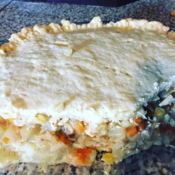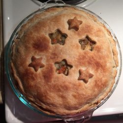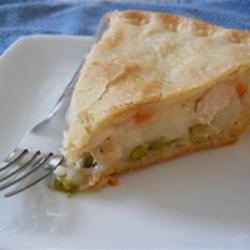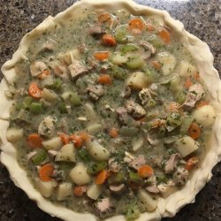 3In a medium saucepan, melt the remaining 2 tablespoons butter. Stir in the turkey and flour. Add the milk, and heat through. Stir the turkey mixture into the vegetable mixture, and cook until thickened. Cool slightly, then pour mixture into the unbaked pie shell. Roll out the top crust, and place on top of filling. Flute edges, and make 4 slits in the top crust to let out steam.