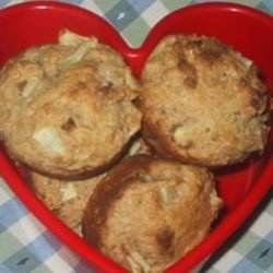 2In a large bowl, mix flour, baking powder, sugar mixture, salt, milk, and applesauce. Do not overbeat. Stir in diced apples. Spoon batter into 12 greased muffin cups.