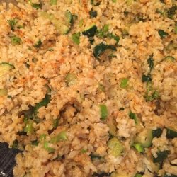 3Heat the oil in a skillet over medium heat, and cook the zucchini, green onions, and garlic 5 minutes, or until tender. Season with garlic salt, basil, paprika, and oregano. Mix in the cooked rice, tomatoes, and 1 cup cheese. Continue to cook and stir until heated through. Transfer to the prepared casserole dish. Top with remaining cheese.
