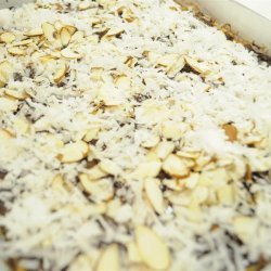 4Bake in preheated oven for 5 minutes. Sprinkle chocolate chips evenly over the top. Sprinkle almonds over chocolate chips; using the back of a wooden spoon, press nuts into chocolate.