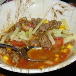 "This easy soup is hearty, yet extremely tasty. This is really a form of chili, but uses some ingredients not found in regular chili. Sure to be a hit, you can adjust the spice as needed by using varying levels of jalapenos and RO*TEL® varieties. Top with shredded sharp Cheddar cheese and/or sour cream. Serve with tortilla chips. Leftovers can be frozen and enjoyed later."
