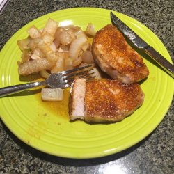 3Place pork chops in a medium baking dish, and spread with 1/2 the sauce.
