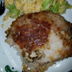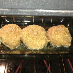 3Dip your pork chops in the egg batter and then in the cracker mixture. Place the pork chops in a casserole dish. Place chunks of the butter around the pork chops. Cover and bake for 45 minutes.