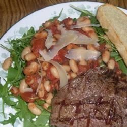 2Arrange the arugula on a serving platter. Spoon the bean mixture over the arugula. Top with the shaved Parmesan cheese if desired.